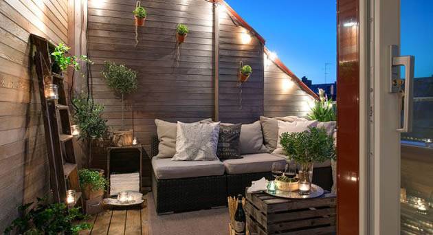 Еден од најимпресивните моменти на  овој апартман е терасата што продолжува од кујнскиот простор. Исполнета со удобен мебел за седење и еден куп растенија, терасата изгледа како најудобна опција за релаксирана вечер.