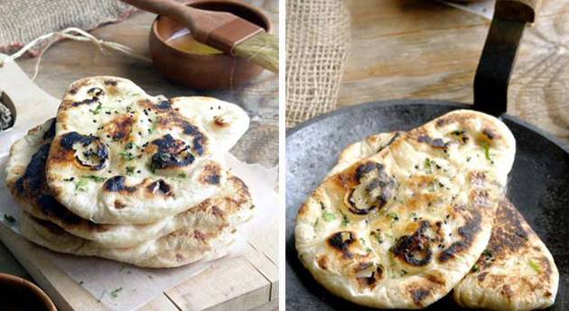 Традиционален индиски наан 8.Кога е готово, премачкајте го со путер.