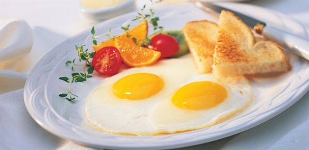 Едно јајце содржат 6.5 грама белковини, 1,7 грама заситени масти. Содржи високо ниво на холестерол, кој може да ги затне крвните садови а со тоа огромен ризик фактор за срцеви заболувања. Јајцето е богато со витамин Б2( рибофлавин), витамин Б12, витамин А и низа други витамини и фолна киселина. Но сите овие позитивни состојки кои ги има едно јајце ја губат својата ефикасност доколку се консумираат како прво јадење. Појадокот не е време за да се внесат толку битни елементи за нашиот организам бидејќи тој нема толкав капацитет да ги искористи, ги таложи а нивното таложење доколку не се потроши како енергија се претвора во лош холестерол.