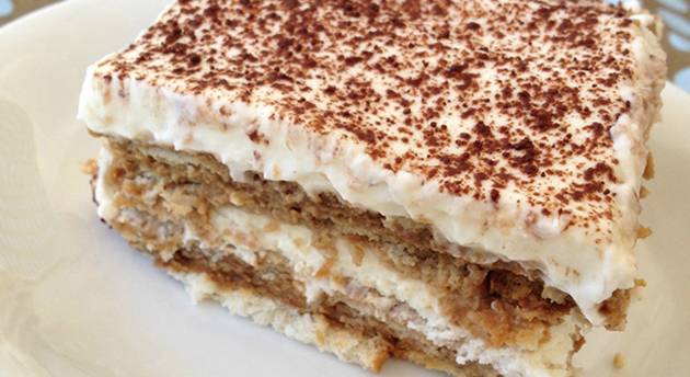 Секоја бисквита ја потопуваме во ладно млеко, во кое по желба може да се додаде и малку арома на рум и правиме прв ред, па премачуваме од филот. Така се прават 3-4 реда, ред бисквити-ред фил. Готовата торта ја наросуваме со рендана чоколада или чоколадни трошки и ја оставаме една ноќ во фрижидер.