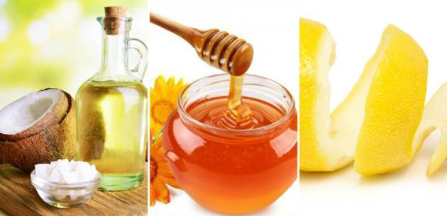 Потребни ви се мед, кокосово масло и рендана кора од лимон. Сите овие состојки измешајте ги додека не добиете густа и хомогена смеса.