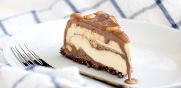 Двата крема кога ќе се стегнат, ставете ги на бисквитот, прво темниот, па светлиот. Растопете чоколадо со масло и со оваа глазура декорирајте ја тортата.