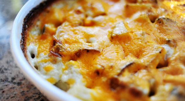 На сам крај, одозгора ставете од ренданиот кашкавал и оставете го во рерна уште неколку минути само колку да се растопи кашкавалот.