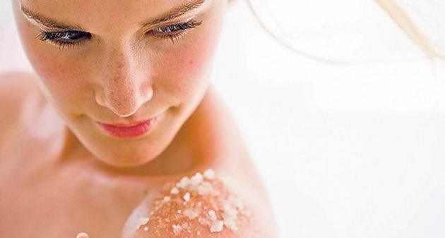 Рецепт: Измешајте ¼ чаша морска сол и ½ чаша маслиново масло и добро промешајте ги. Можете да додадете и 10 капки етерично масло по желба. За време на туширањето, со кружни движења истријте ја кожата со оваа смеса, а потоа добро измијте.