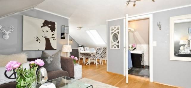 Со портрет од Одри Хепберн – иконата на стилот, уште на прв поглед добиваме впечаток дека се работи за стан во кој се негува добриот вкус.