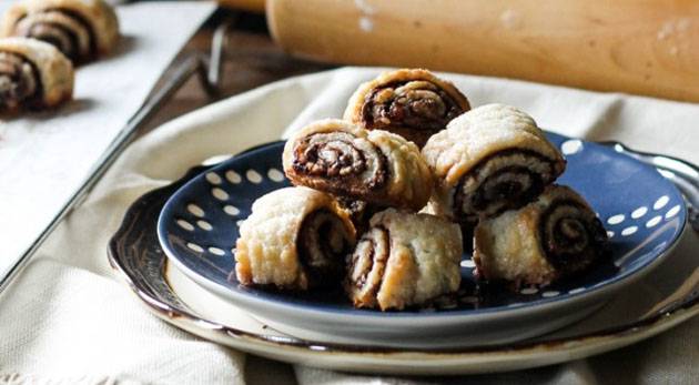 Размесете го тестото и поделете го на 4 еднакви делови. Секој дел расучете го со сукало во форма на правоаголниок. Потоа на него ставете 2 лажици нутела, па 2 лажици од џемот. Завиткајте го тестото како ролат.