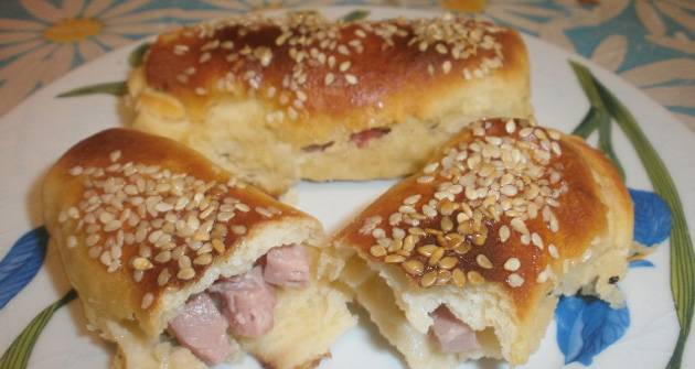 Во сад ги ставаме млекото,жолчките,квасецот,сол,компирите изрендани и брашното и замесуваме тесто. Се остава да стаса потоа се премесува и се остава малку да одмори. Се сука кора и се сече на коцки. На секоја коцка се става од филот и се витка како ролна. Се редат во подмачкана тепсија и се премачкуваат со белка и се поросуваат со сусам. Ги оставаме 5 минути и потоа ги печеме во загреана релна на 200 степени додека да поруменат. Кога ќе ги извадиме од релна ги премачкуваме со путер или маргарин.