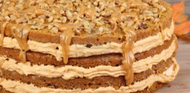 Цврсто изматете ги белките со шеќерот и со нежно мешање додадете брашно, какао и прашок за пециво. На крајот додадете и мелени лешници. Од смесата испечете две кори, секоја по 20 минути на 160 степени. Оладените кори пресечете ги така што ќе добиете четири. Карамал бомбоните ставете ги во 150 мл топло млеко и на тивок оган загрејте ги да се стопат. Од преостанатото млеко одвојте 100 мл, а останатото додадете го на растопените карамели и загрејте до вриење. Во посебен сад соединете ги жолчките, густинот, шеќерот и ладното млеко и смесата додадете ја во карамел млекото. Сварете густ крем, енергично мешајте и тргнете од оган. Покријте ја површината на кремот со проѕирна фолија и оставете да се олади. Од филот одвојте неколку лажички за декорирање на тортата, а во преостанатиот фил додадете изматен маргарин и павлака. Секоја кора попрскајте ја со млеко и рум, филувајте ја тортата и украсете ја со крамал крем.