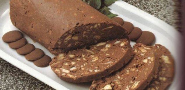 - Конечно, го додаваме сувото грозје и останатото количество бисквити (скршени). Месиме со рака и правиме форма на салама. Ја ставаме во фолија.