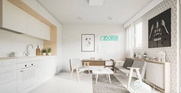 Овој ентериер се одликува со својот компактен изглед поради фактот што се простира на 20 м2, и тој е доказ дека во еден ограничен простор може да се организира целосно инспиративно откритие.