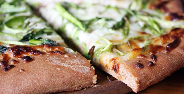 Рерната загрејте ја на 200 степени, калапот за пица обложете го со хартија за печење. Истурете го тестото во калап со големина 28 см, па убаво распоредете го во него.