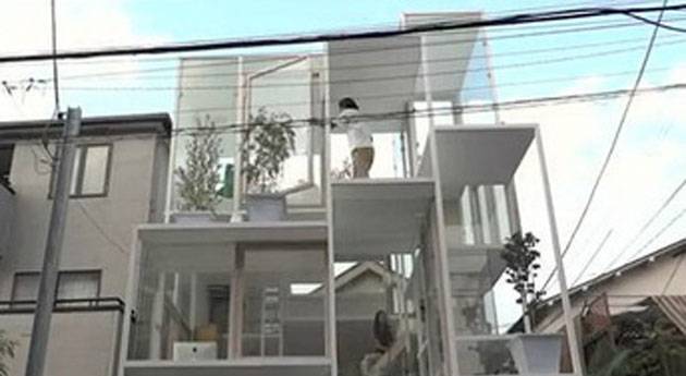 Оваа модерна куќа во Јапонија е направена од стакло.