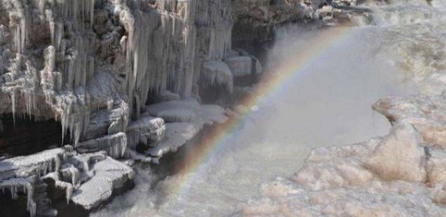 Зимата ги опитомила водите на најголемиот водопад на жолтата река и создала неверојатен магичен пејсаж кој автоматски ги приковува погледите на присутните.