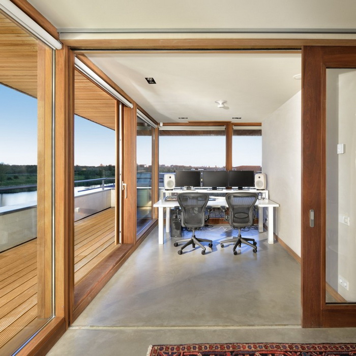 Семејната вила се наоѓа на островот Rieteiland-Oost и нуди прекрасна дневна соба и работен простор. Има и три нивоа на живеење, а на долното ниво се наоѓа отворена дневна соба, приватните простории се во центарот, додека пак канцеларискиот простор е најгоре на врвот.
