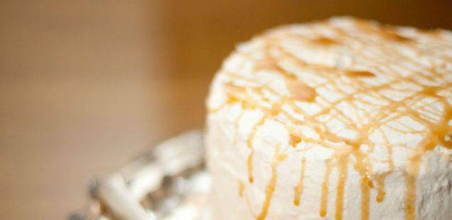 На чинија ставете ја првата кора и обликувајте ја по желба. Врз неа втората, па третата и на крајот шлаг.