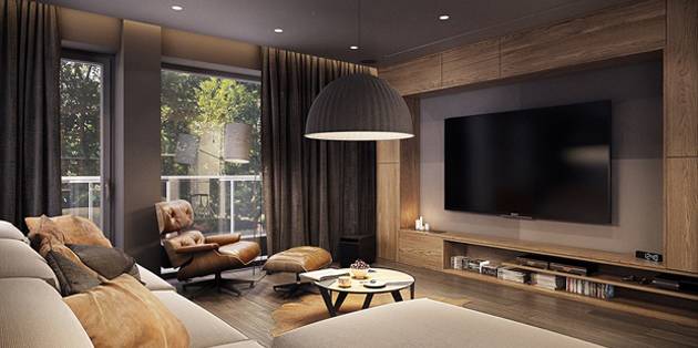 Овој стан во својата материјализација интензивно ги употребува дрвото и кожата, што во комбинација со текстил во кафеавкасти тонови и пријатно осветлување им дава прекрасно пријатно чувство на своите корисници.