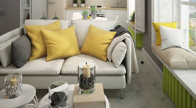 Овој стан е компактен но целосно удобен, а зазема скромни 28 метри квадратни. Дизајниран е од страна на Ирина Овсиаников за потребите на млад брачен пар. Станот со спектакуларен поглед кон брегот претрпел одредени промени, со цел да се адаптира на потребите на корисниците.