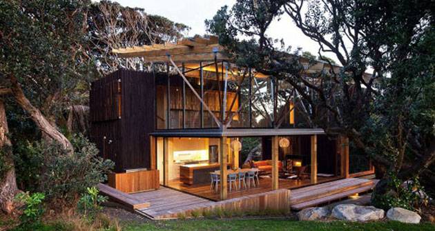 Овој дом е изработен од дизајнерската куќа „Herbst Architects“, а неговите сопственици имаат неверојатна можност да уживаат во прекрасната природа и интимниот амбиент. Таа се наоѓа во близина на една дива плажа, недалеку од Окленд, Нов Зеланд, а е опколена со дрвја од видот Похутукава, кој е познат како Новозеландско Божиќно дрво.