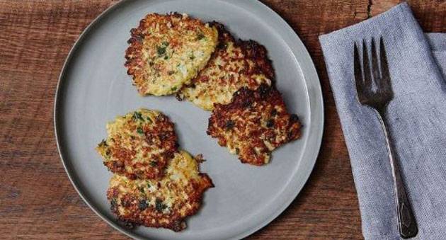 Во еден сад измешајте ги карфиолот, брашното, лукот, изматените јајца, изренданиот кашкавал, магдоносот, сол и бибер.