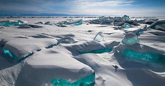 Фотографиите се сликани на југот на Сибир, а езерото е замрзнато поради екстремно ниските температури. И во ваква состојба, езерото привлекува туристи. На фотографиите се забележуваат дебели наслаги од мраз кои се прелеваат во сино-зелена боја, а снимена е и бајкалската зора од која застанува здивот.
