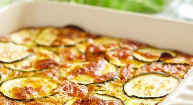 Во тепсија ставете хартија за печење. Јајцата изматете ги со јогурт и масло. Сипете во калап, додадете ги маринираните тиквички и врз нив ставете сирење.