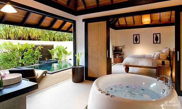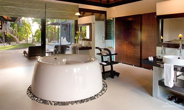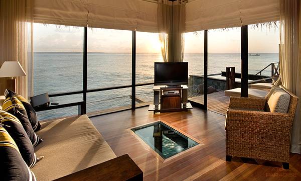 Погледнете ја внатрешноста на овие куќи направени од слама од надворешниот дел, а внатре богато и луксузно уредени. Секоја од куќите има неверојатен поглед кон вода кој плени. За дополнителен гламур и удобност, целите куќи се отворени од напред со огромени стаклени лизгачки врати.