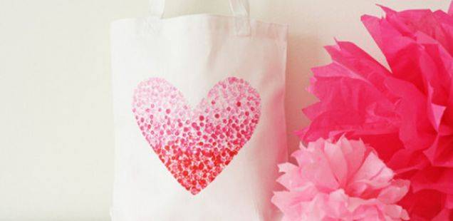 Направете од хартија шаблон во форма на срце. Се што треба е со врвот на моливот, односно гумата да го натопите во боја и полека да ставате печат во форма на точки кои ќе ги следат линиите на шаблонот.
