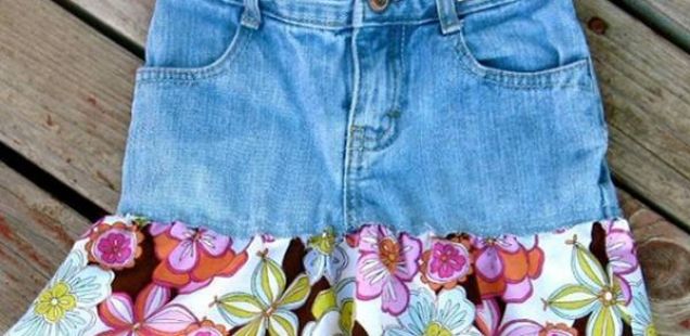 Повторно станува збор за тексас здолниште, но во комбинација со ткаенина . Овој модел се прави многу лесно и ќе се уверите дека можете да го направите сосема сами, со користење на пар стари фармерки.