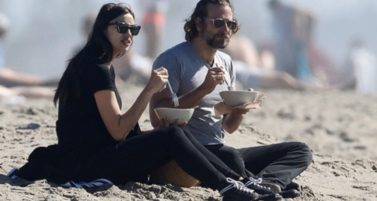 42-годишниот актер и 31-годишната манекенка се шетаа покрај плажата, а потоа уживаа во својата љубов, разменуваа нежности и бакнежи и лежеа на плажата. Покрај сите романтични вечери и прослави, заљубените Ирина и Бредли одлучија да одвојат време за себе и на поразличен начин да го поминат Денот на вљубените. Зарем има поубав начин од тоа да уживаш во свежиот воздух, прекрасниот поглед и прегратката на саканиот?