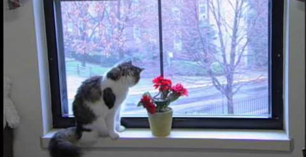 Ова е многу чуден мачор. Неговото име е Оскар и често своето време го поминува во ходникот на Street House старечкиот дом.