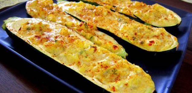 Тиквичките се полнат со подготвената смеса и се редат во тава.