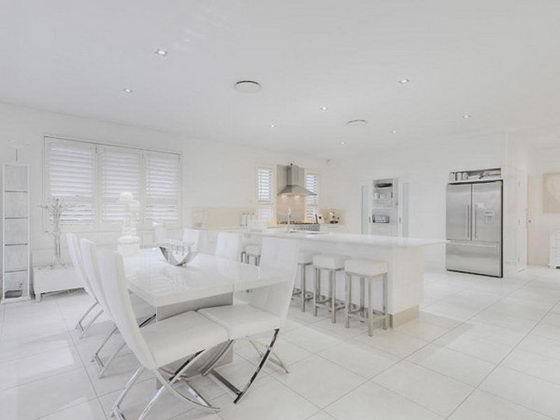 Оваа куќа, која се наоѓа на површина од 824 метри квадратни е вистинска бела кралица. Всушност, 90% од нејзината внатрешност и нејзината надворешност, се обоени во бело. Неодоливите 4 спални, 4 бањи, базенот, секој агол од овој дом блеска во чиста бела боја…