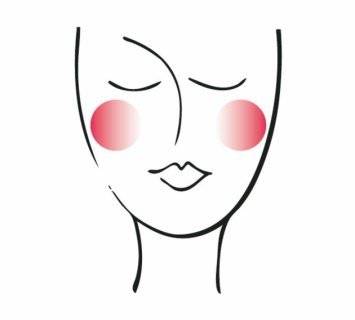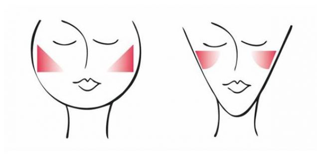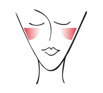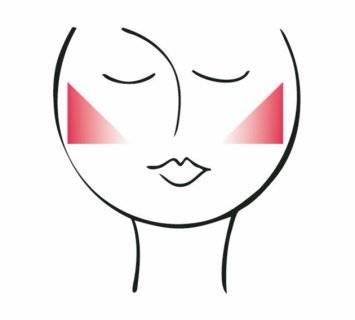Со широка четка нанесете руменило како на сликата, со тоа што бојата да биде најинтензивна по должината на надворешната страна на замислениот триаголник. Така визуелно ќе го издолжите лицето.