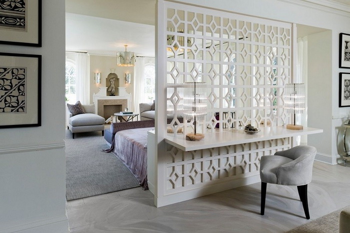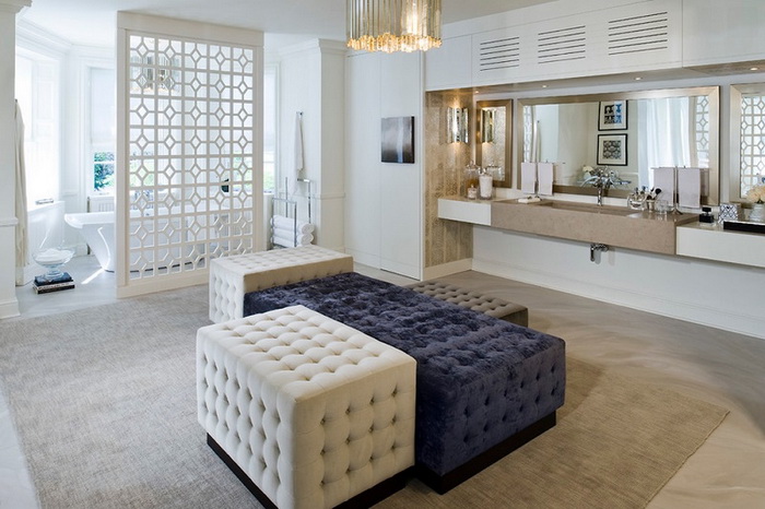Селдон посветила големо внимание на изборот на декоративни елементи и материјали за спалната соба да изгледа гламурозно, но не и нападно. Употребила висечки лустери со сребрена нијанса, винтиџ арт-деко количка за пијалаци и четири меки кадифени фотелји во различни бои како централен декор во бањата.