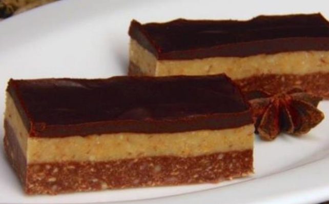Водата, шеќерот и 150 гр маргарин ставете ги да се варат. Додадете ги мелените бисквити и ореви. Измешајте сè и поделете ги на два дела. Во еден додадете 100 гр чоколада. Во тепсија истурете ја кафеавата, после посветлиот крем. Одозгора глазура. Обавезно дупла маса. Глазура: 100 гр чоколада и 50 гр маргарин за мала тепсија. За голема тепсија двојно повеќе. Чоколадото се топи на пареа и се додава маргаринот. Мешајте добро заедно. На крај одозгора се става глазурата.