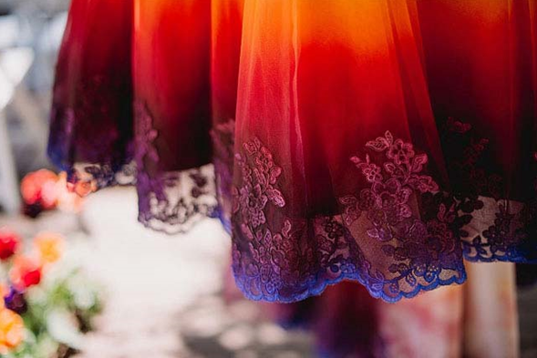 Тогаш земете ја вашата венчаница и натопете ја во малку боја или поминете ја со помош на airbrush. Венчаницата која малку ќе ја зачините со додаток на боја ќе добие посебен изглед, а во исто време го решава проблемот со кој сите невести со подолг фустан се борат. Во текот на вечерта ќе го избришете подот и свадбениот фустан ќе биде извалкан, понекогаш до тој степен што ќе биде тешко да се исчисти.