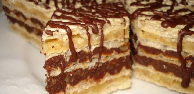 Потоа ставете ја глазурата. За глазурата растопете го чоколадото на пареа со маслото и прелијте преку готовите обланди.