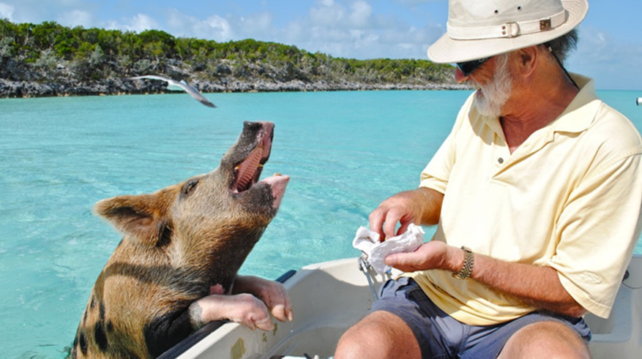 Колонијата на свињи на островот Биг Мејџор Кеј во Бахамскиот архипелаг одамна е туристичка и интернет атракција, но исто така и заштитен вид кој буквално живее во рајот.