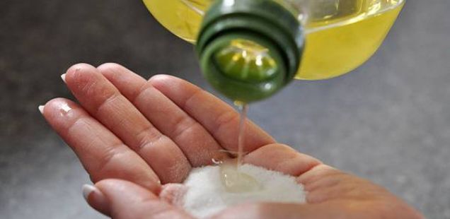 Во една рака ставете 1-2 лажици шеќер и еднаква количина маслиново масло па едноставно истријте ги рацете со оваа мешавина. Со прстите масирајте ги дланките да ги отстраните сите мртви келии од кожата.