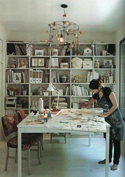 Наредете наједноставно дизајнирани полици  по целиот ѕид. Овие полици може да ги искористите за сите ситници, книги, кутии…