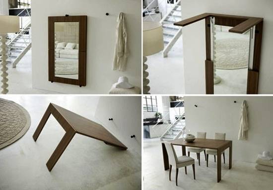 На пример масичката направете ја со огледало на долниот дел. Закачете ја на ѕидот, па користете ја според намената.