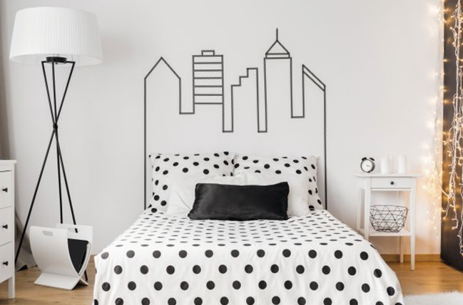 Исцртајте со молив, а потоа со молерска лента излепете ја по рабовите површината што сакате да ја насликате. Потоа нанесете ја бојата со четка!