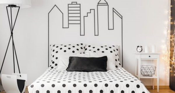 Исцртајте со молив, а потоа со молерска лента излепете ја по рабовите површината што сакате да ја насликате. Потоа нанесете ја бојата со четка!