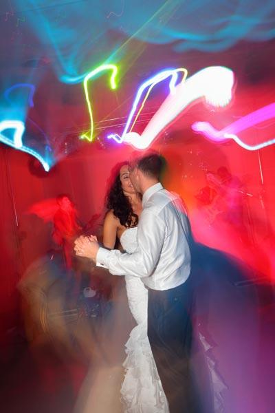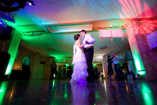 • следење на младенците со светлосен топ (прв танц, сечење на тортата)
