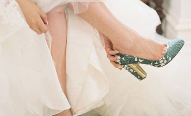Ако сте избрале венчаница со класични светли нијанси, не морате да ги вклопите чевлите во таа палета. Изберете розеви, сини, црни или зелени обувки и внесете малку ведрина во вашиот изглед.