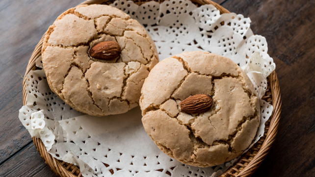 Украсете го секое колаче со еден бадем во средината – од оваа мешавина ќе добиете околу 30 колачиња.
