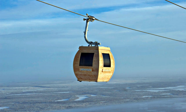 Првата суспендирана сауна во светот кружи на две километри долга жичара, а собира четири особи во исто време со 20 минутни спектакуларни погледи на Лапландскиот бел пејзаж.