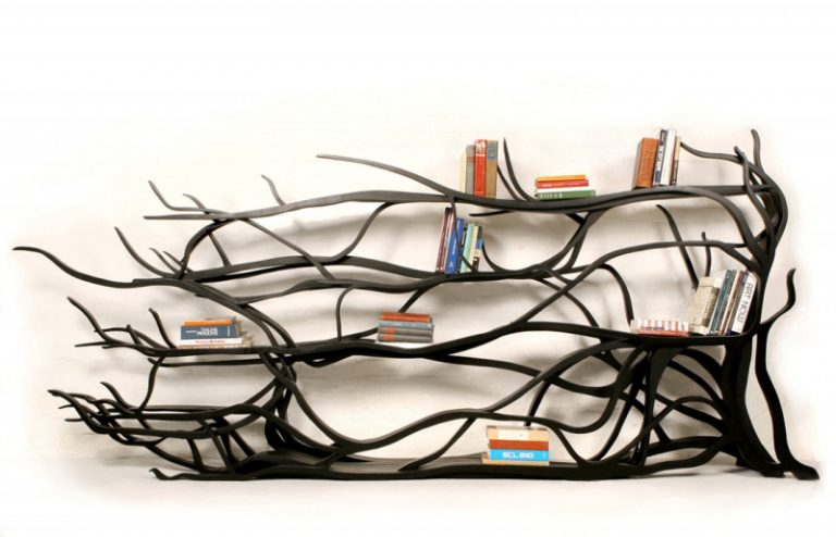 Всушност, тој создава полици и маси во стилот на дрвени структури кои ја инспирираат неговата работа.