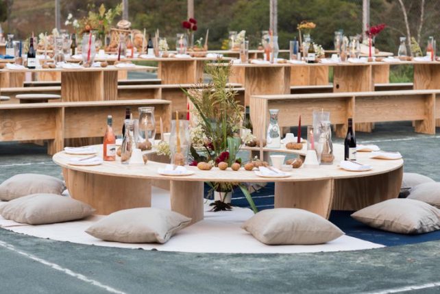 Значи, имаме идеја: Размислувајте над вообичаената маса за јадење и наместо тоа, обезбедете седење што е истовремено удобно и уникатно.