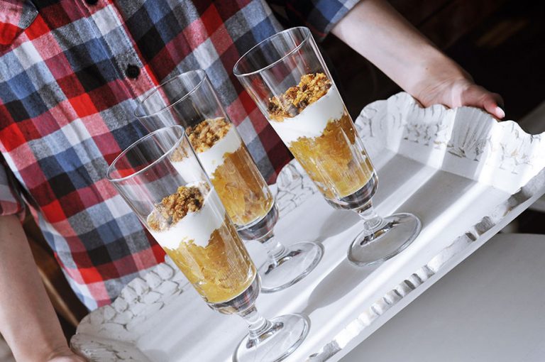 Она што е важно е дека десертот се прави за само дваесет минути, бидејќи не бара печење како класичниот crumble , кујната мириса на цимет, а гостите се воодушевени.